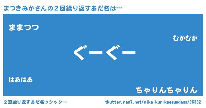 | 意味不明あだ名 | 『永久保存まつきみか』『自称まつきみか』 |