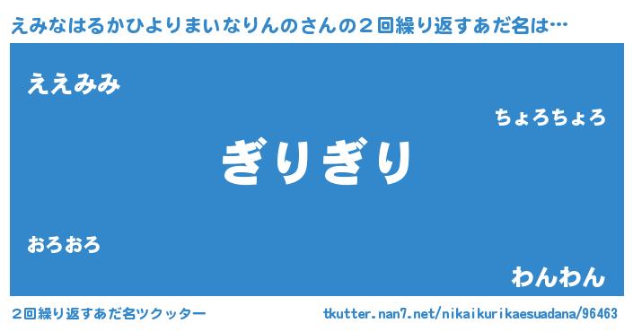 | 意味不明あだ名 | 『永久保存えみなはるかひよりまいなりんの』 |