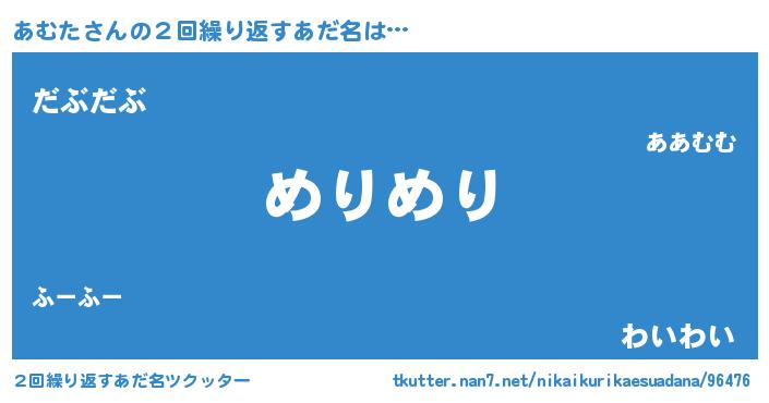 | 男性向けラノベタイトル風あだ名 | 『Re:あむたから始める異世界生活』 |