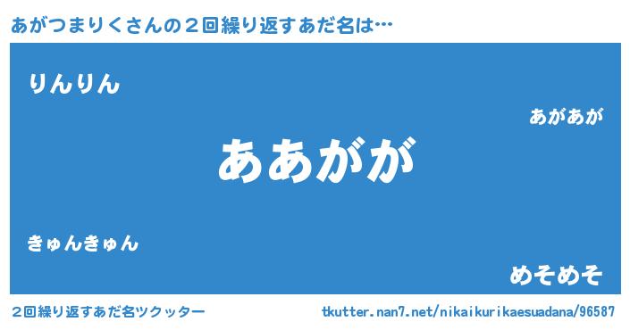 | 欧米人風あだ名 | 『アンジェラ・あがつまりく』 |
