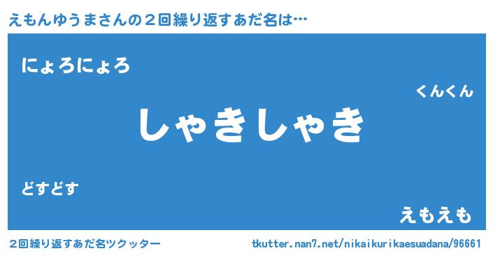 | ポケモン風あだ名 | 『エーモイ』『ヒエモンユウマ』 |