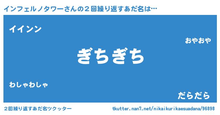 | 意味不明あだ名 | 『永久保存インフェルノタワー』 |