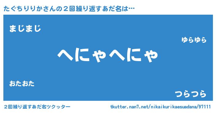 | 男性向けラノベタイトル風あだ名 | 『ノーゲーム・ノータグチリリカ』 |