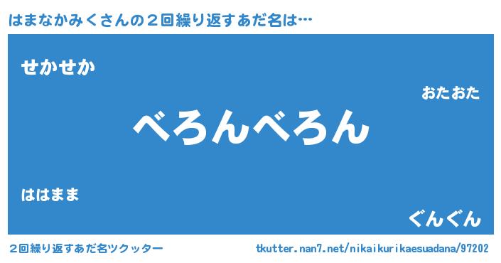 | ヘコむあだ名 | 『はまなかみく(震え声)』『はまっ子』 |