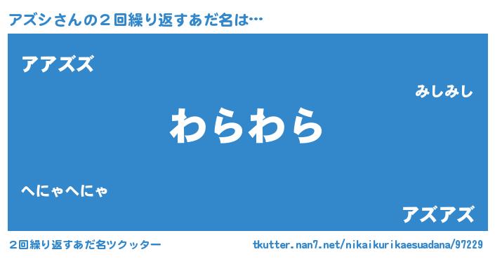| 欧米人風あだ名 | 『トリンドルアズシ』『アズシクリステル』 |