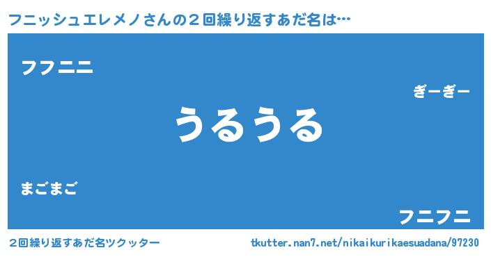| ポケモン風あだ名 | 『ヒフニッシュエレメノ』『フニッダネ』 |