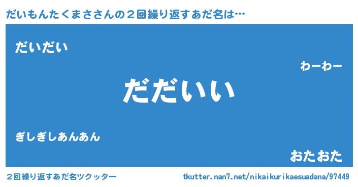 | 肩書あだ名 | 『だいもんたくまさ総理大臣』 |