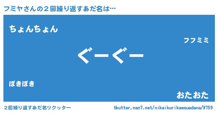 | ポケモン風あだ名 | 『ゼニフミ』『フミゴンZ』『ヒフミヤ』 |