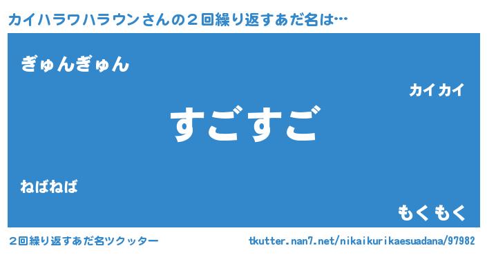 | 意味不明あだ名 | 『住所不定無職カイハラワハラウン(47歳)』 |