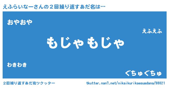| 男性向けラノベタイトル風あだ名 | 『Re:えふらいなーから始める異世界生活』 |
