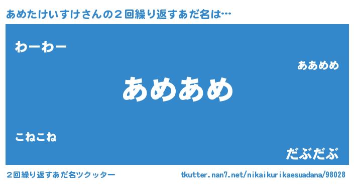 | ヒーロー風カッコイイあだ名 | 『スーパーアメタケイスケ』 |