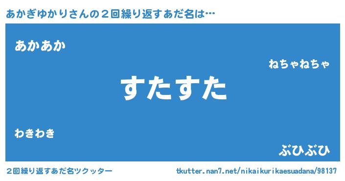 | 意味不明あだ名 | 『住所不定無職あかぎゆかり(47歳)』 |
