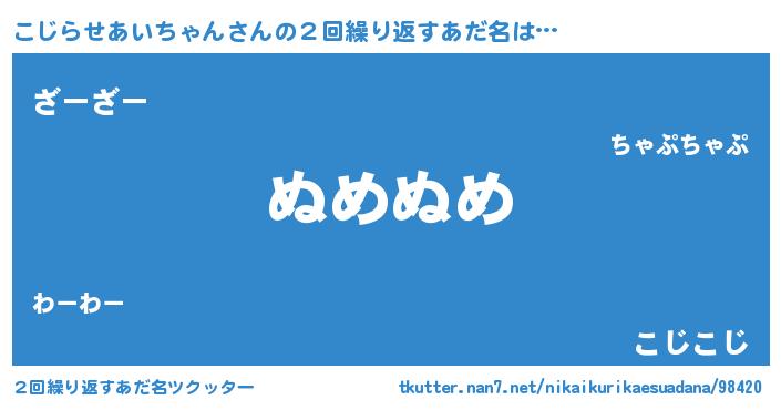 | 欧米人風あだ名 | 『ウサインこじらせあいちゃん』 |