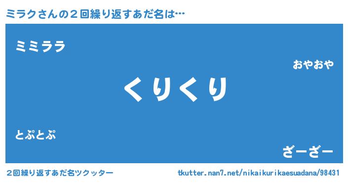 | ファンタジー風あだ名 | 『ミラディッシュ』『エターナルミラクー』 |