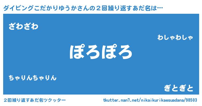 | ヘコむあだ名 | 『ダイビングこだかりゆうか(笑)』『つくし』 |