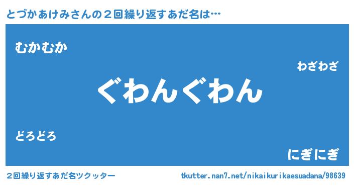 | 意味不明あだ名 | 『永久保存とづかあけみ』 |