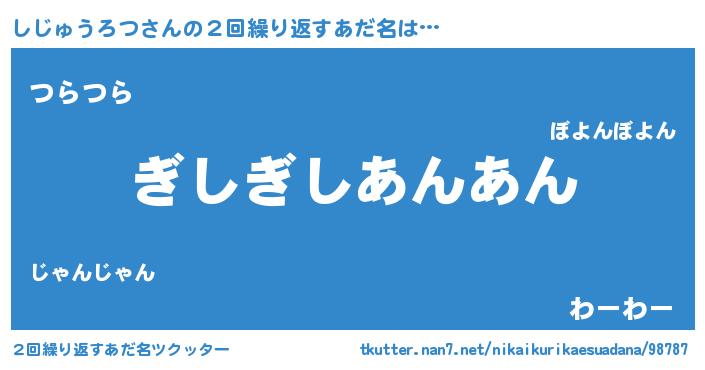 | 意味不明あだ名 | 『永久保存しじゅうろつ』 |