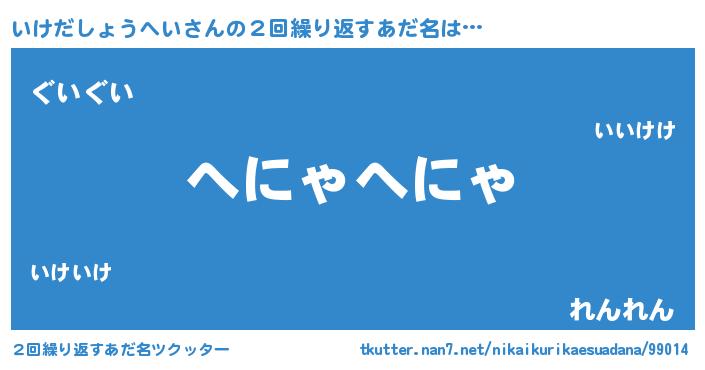 | ヘコむあだ名 | 『いけだしょうへい(震え声)』『レバニラ』 |