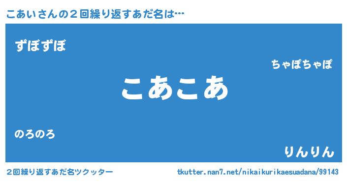 | 男性向けラノベタイトル風あだ名 | 『こあいの憂鬱』『魔弾の王とこあい』 |