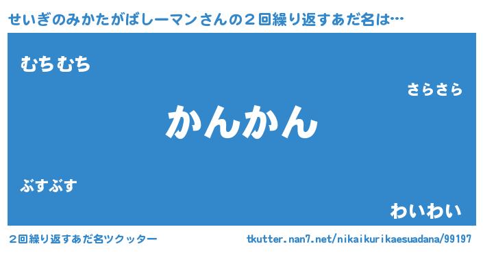 | 意味不明あだ名 | 『永久保存せいぎのみかたがばしーマン』 |