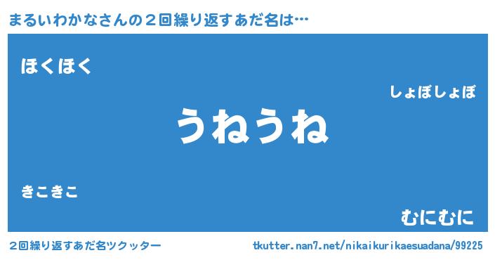 | 欧米人風あだ名 | 『ウサインまるいわかな』 |
