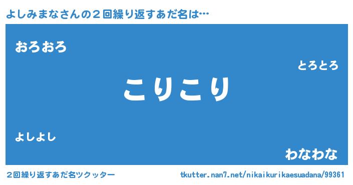 | ヘコむあだ名 | 『よしみまな(爆)』『よしっちょ』 |