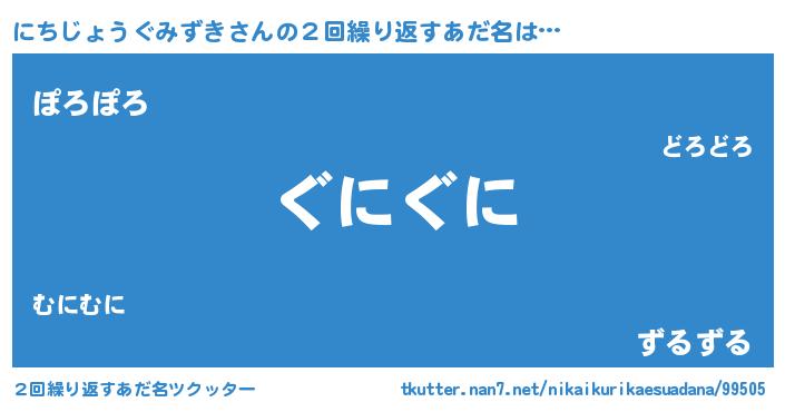 | 意味不明あだ名 | 『永久保存にちじょうぐみずき』 |