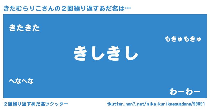 | 女子向けラノベタイトル風あだ名 | 『異世界で失敗しない100のきたむらりこ』 |