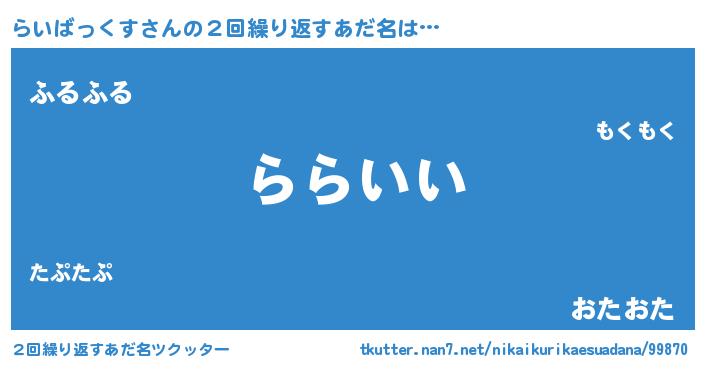 | 意味不明あだ名 | 『らいばっくすフォーエバー』 |