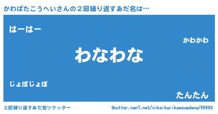 | ヘコむあだ名 | 『かわふぇ~』『かわばたこうへい(笑)』 |