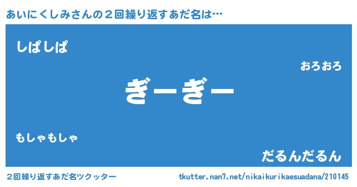 | 欧米人風あだ名 | 『アンジェラ・あいにくしみ』 |