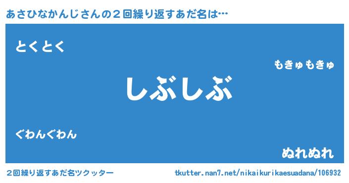 | 意味不明あだ名 | 『住所不定無職あさひなかんじ(98歳)』 |