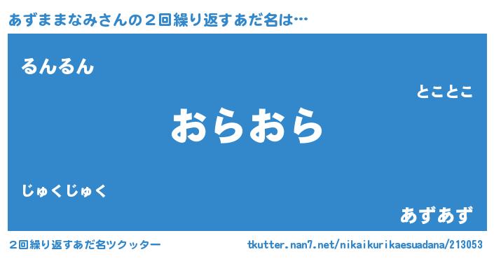 | ポケモン風あだ名 | 『アズゴンZ』『ヒアズママナミ』 |