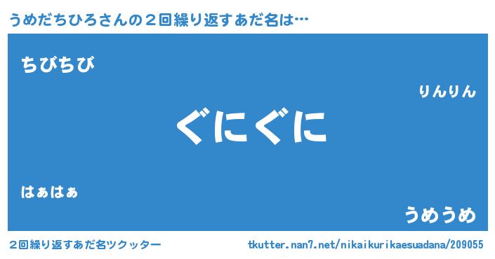 | ピコ太郎風あだ名 | 『ピコウ郎』『ウコ史郎』『ウウ太郎』 |