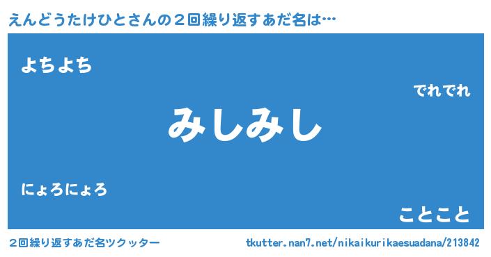| ヘコむあだ名 | 『えんどうたけひと(遠い目)』『えんっ子』 |