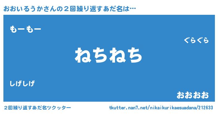 | 男性向けラノベタイトル風あだ名 | 『おおいるうかの嫁は女の子じゃないと思った?』 |