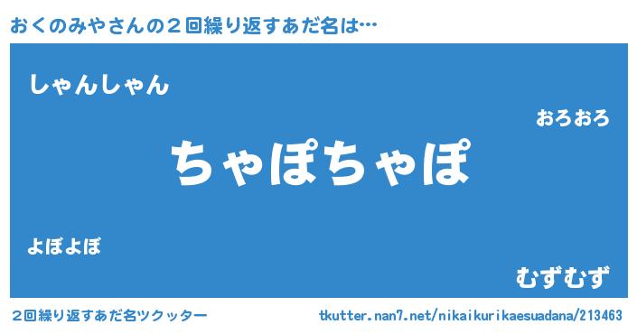 | 意味不明あだ名 | 『住所不定無職おくのみや(86歳)』 |