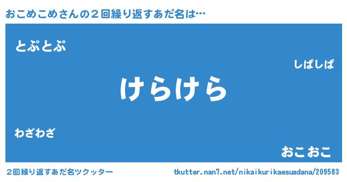 | ヘコむあだ名 | 『おこめこめ(笑)』『おこふぇ~』 |