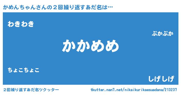| 意味不明あだ名 | 『かめんちゃんフォーエバー』 |