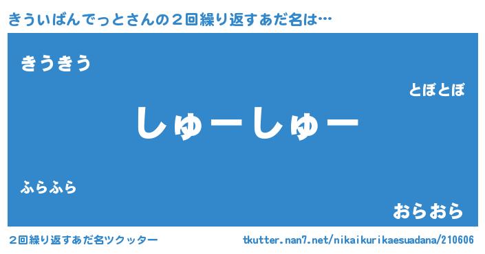 | 意味不明あだ名 | 『住所不定無職きういばんでっと(74歳)』 |