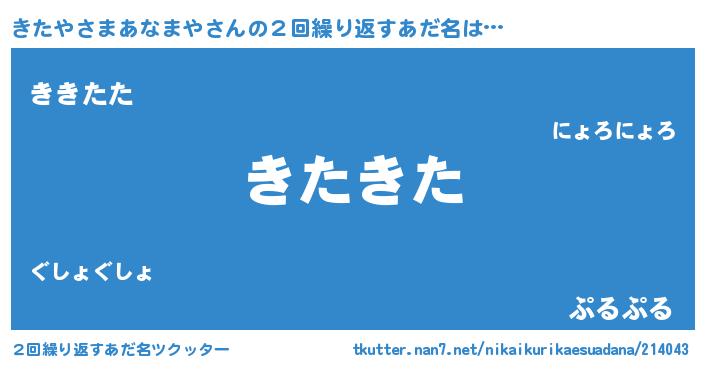 | 欧米人風あだ名 | 『マイケルきたやさまあなまや』 |