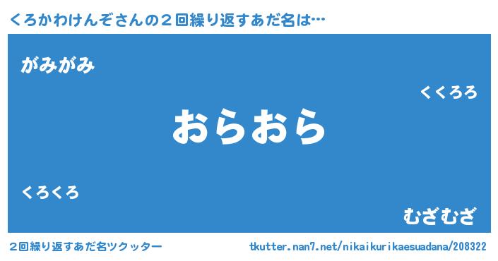 | 意味不明あだ名 | 『とにかく怪しいくろかわけんぞ』 |