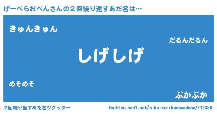 | 意味不明あだ名 | 『住所不定無職げーべらおべん(3歳)』 |