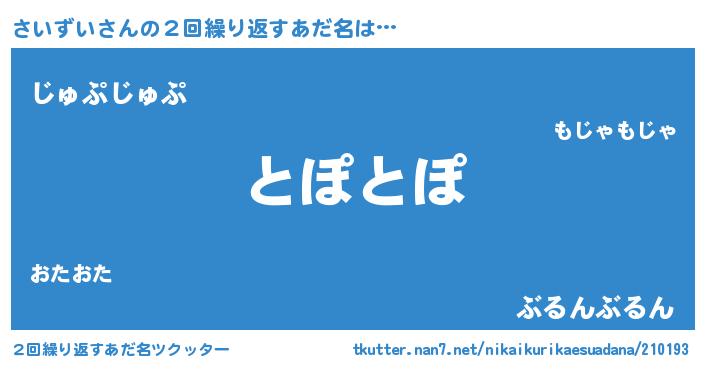 | 意味不明あだ名 | 『住所不定無職さいずい(4歳)』 |