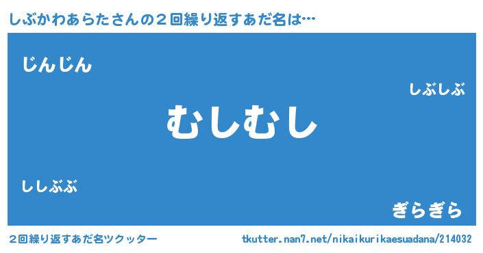 | 意味不明あだ名 | 『自称しぶかわあらた』 |