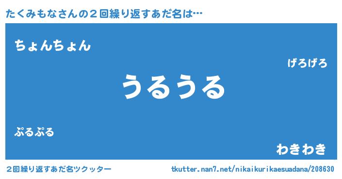 | ヘコむあだ名 | 『たくぷりん』『たくみもな(苦笑)』 |
