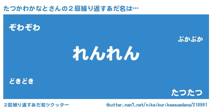 | 男性向けラノベタイトル風あだ名 | 『転生したらたつかわかなとだった件』 |