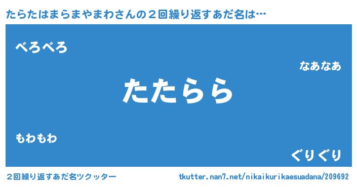 | 肩書あだ名 | 『たらたはまらまやまわ大統領』 |