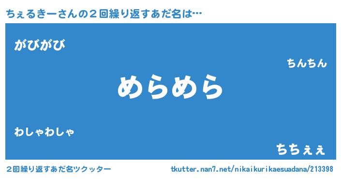 | 可愛いあだ名 | 『ちぇうちぇる』『ちぇるきーママ』 |