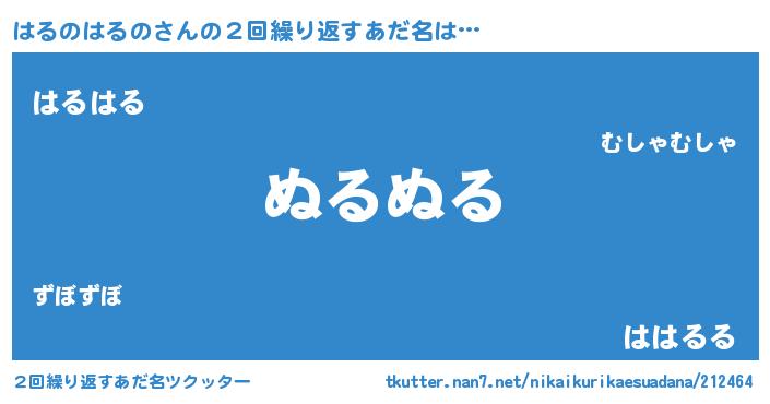 | 男性向けラノベタイトル風あだ名 | 『はるのはるのの嫁は女の子じゃないと思った?』 |
